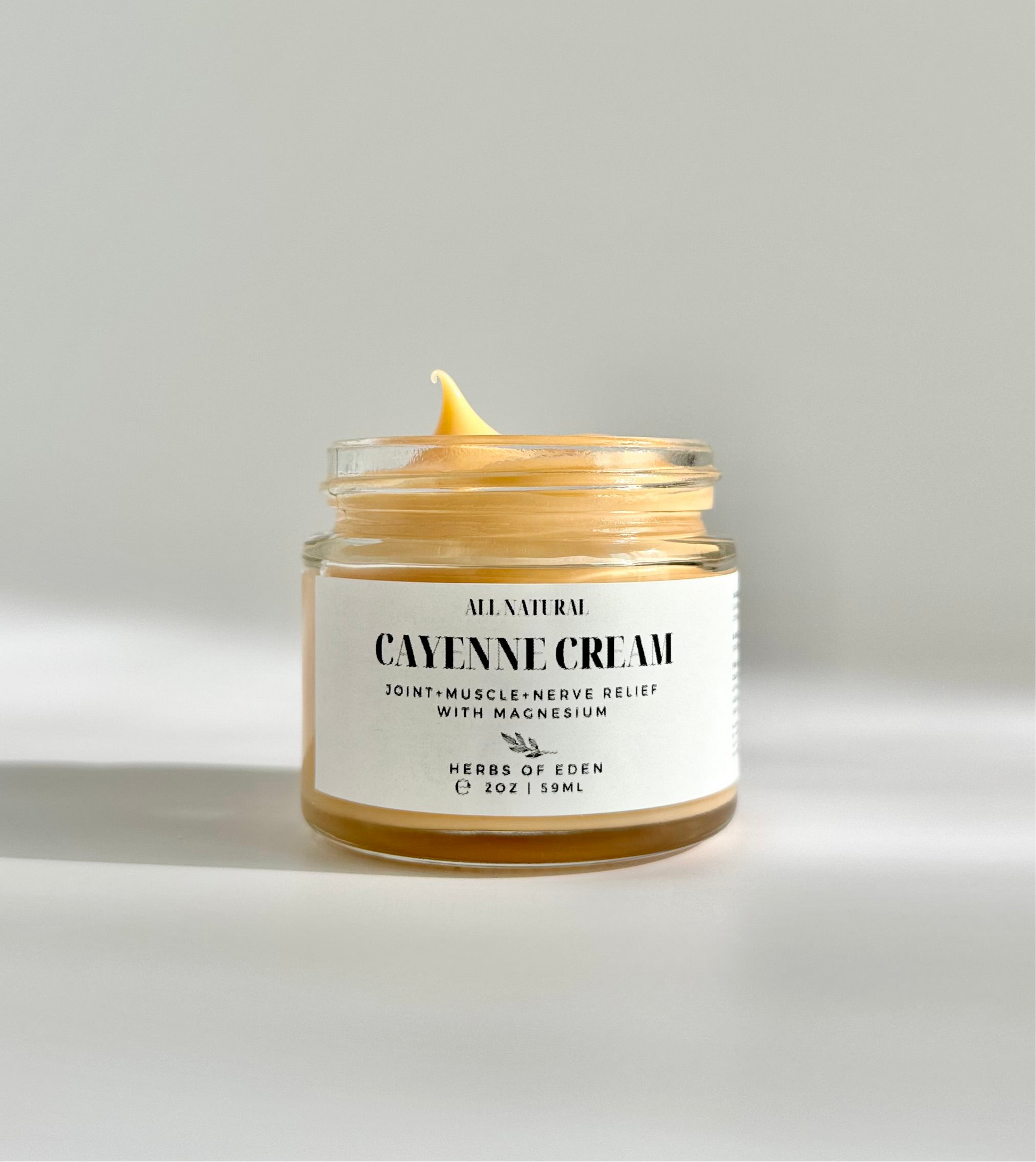 NERVE AND NEUROPATHY: Herbs of Eden Cayenne Arnica and Magnesium Cream soothes discomfort in your hands, feet, joints, muscles.