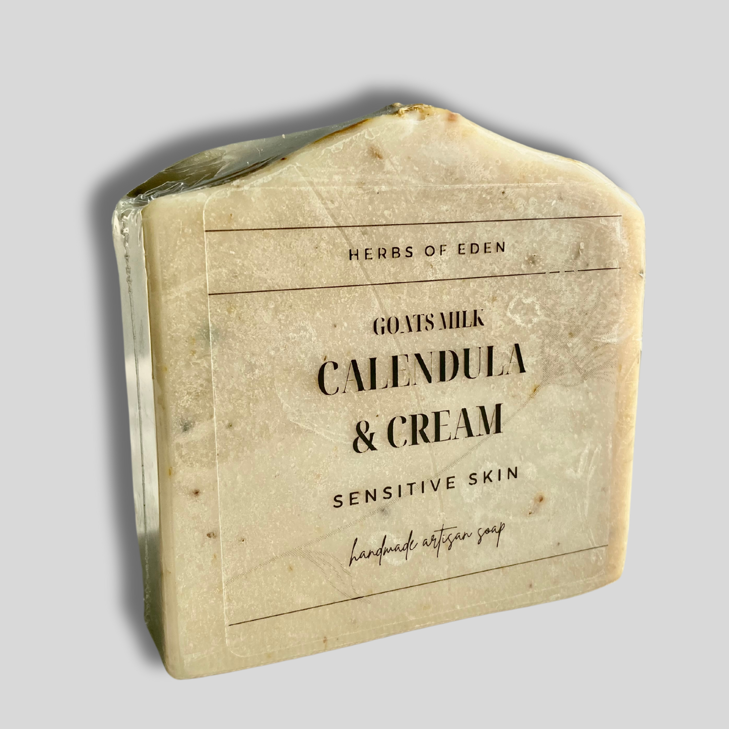 Our Goats Milk Calendula & Cream Soap is crafted with natural ingredients and features anti-bacterial and anti-fungal properties. With calendula oil, this soap helps to heal wounds, soothe eczema, and relieve diaper rash. Enjoy natural skin care with this calming, gentle soap.