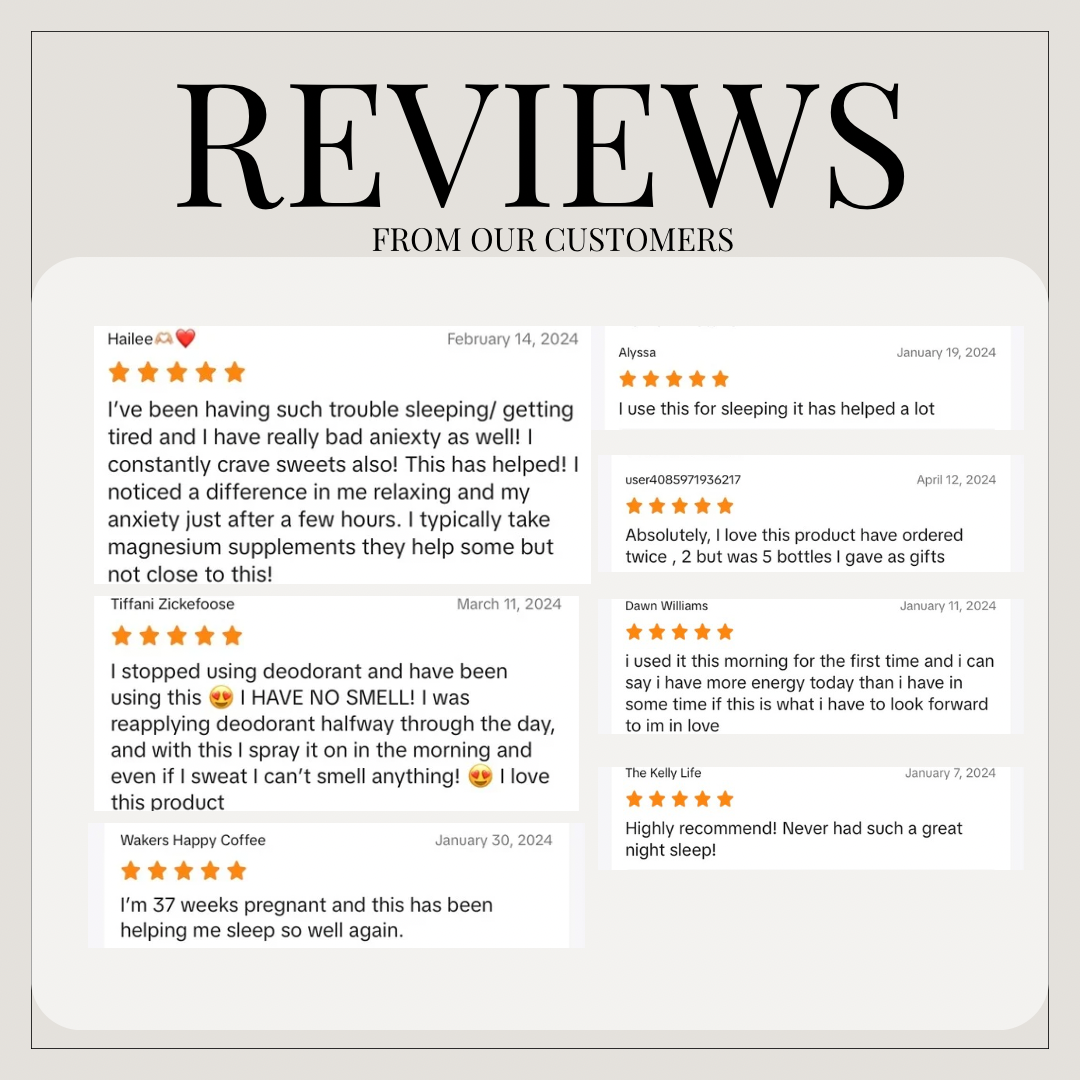 Incorporate our Magnesium Oil Spray into your daily routine and experience the benefits of this powerful mineral firsthand. Your mind, body, and overall well-being will thank you!